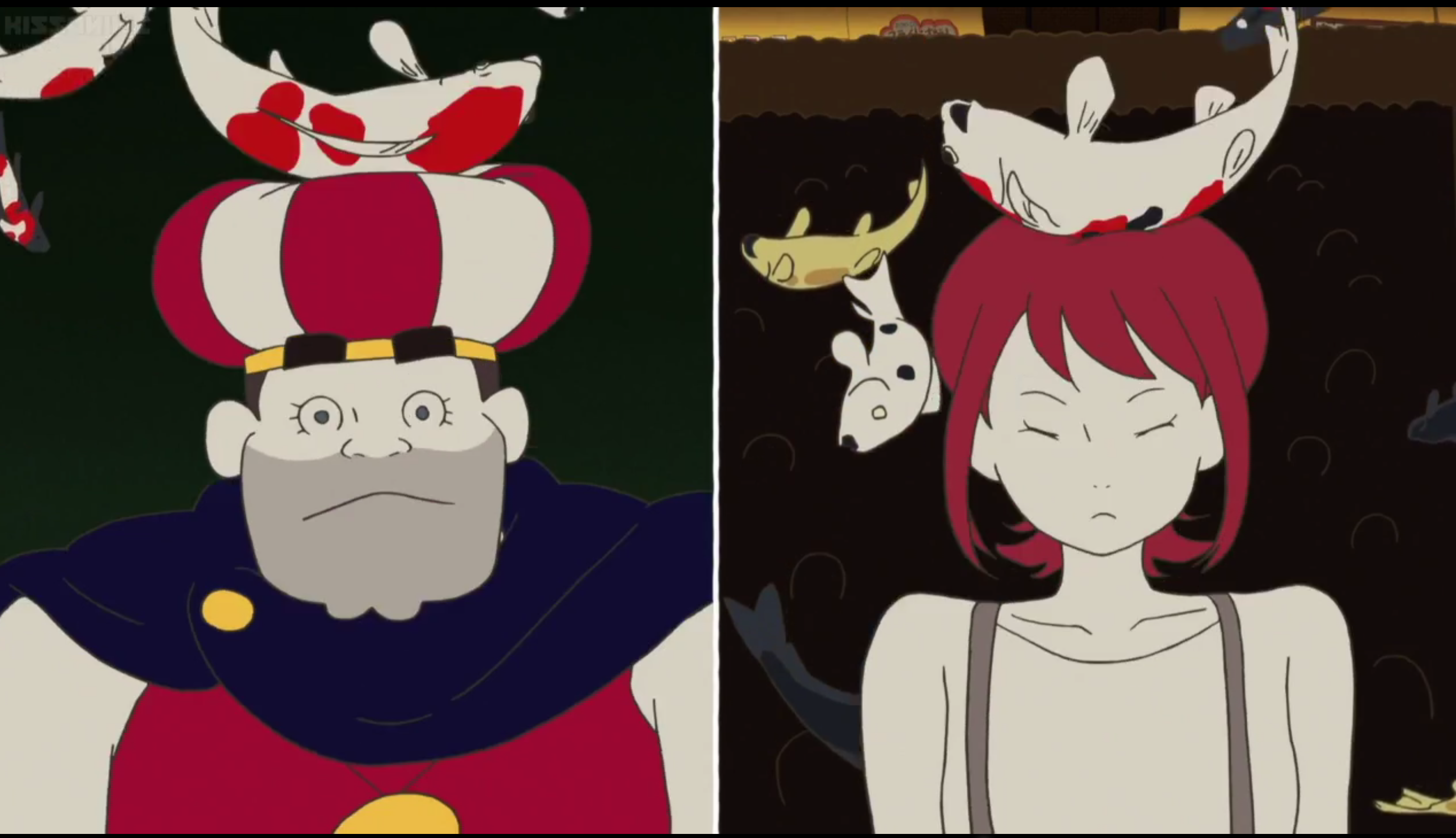 For the rest of the story all these events are quite unimportant. The rain of fish hardly presents a cataclysmic event for the main figure and it only solves a climacteric point in one part of the story, but it is nevertheless a deus ex machina. It’s function is the same, but it is used in a rather accessorial way, as a plot point between others, following moments during a beautiful and strange night in Kyoto.